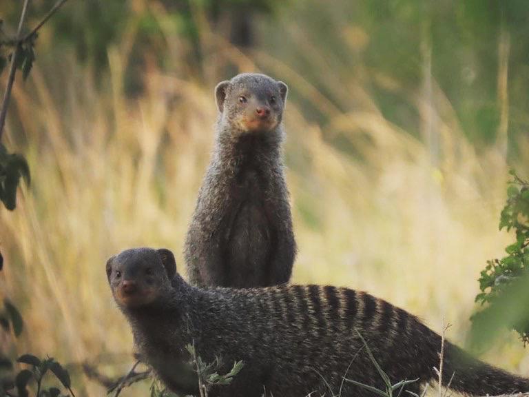 The banded mongoose is a mongoose species native from the Sahel to Southern Africa. It lives in savannas, open forests and grasslands and feeds primarily on beetles and millipedes. Mongooses use various types of dens for shelter including termite mounds.