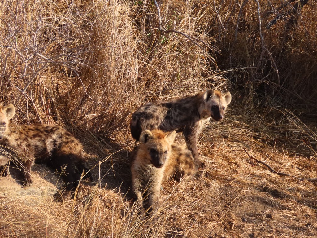 So, our incredible Kruger Day started with a single Black Backed Jackal on the trot, but we got some lovely pictures of it. Sam, our guide, knew of a Hyena den and we were in luck as three of the youngsters were outside the den. We managed to spend a bit of time with them and watch them interact.