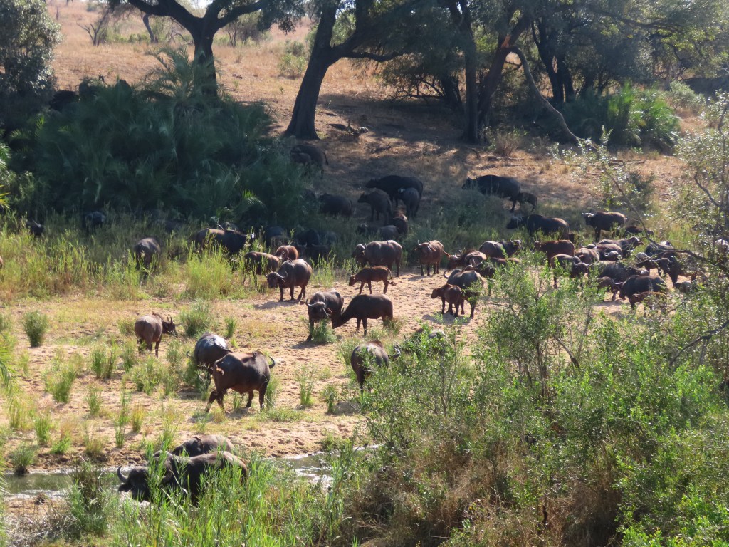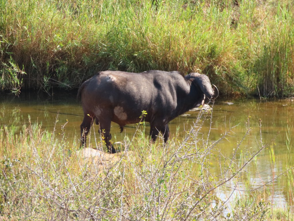 The benefit of going to the Kruger with an experienced guide was very evident at the Buffalo sighting crossing the remnants of what is left of the Timbavati River. At this time of year water is scarce so the waterholes are often teeming with wildlife. I spotted a number of Pied Kingfishers that were hovering above the Buffaloes every time they started to cross the water. Sam indicated that it is because of the Symbiotic relationship between Kingfishers and Buffaloes. When the Buffaloes start to cross the river they disturb the fish that might be hiding, that then gives the Kingfishers the opportunity to literrally dive in! When you study Nature Guiding Symbiotic Relationships are discussed all the time and this was an example of Commensalism that I have never see in real live. Nature is just fascinating!